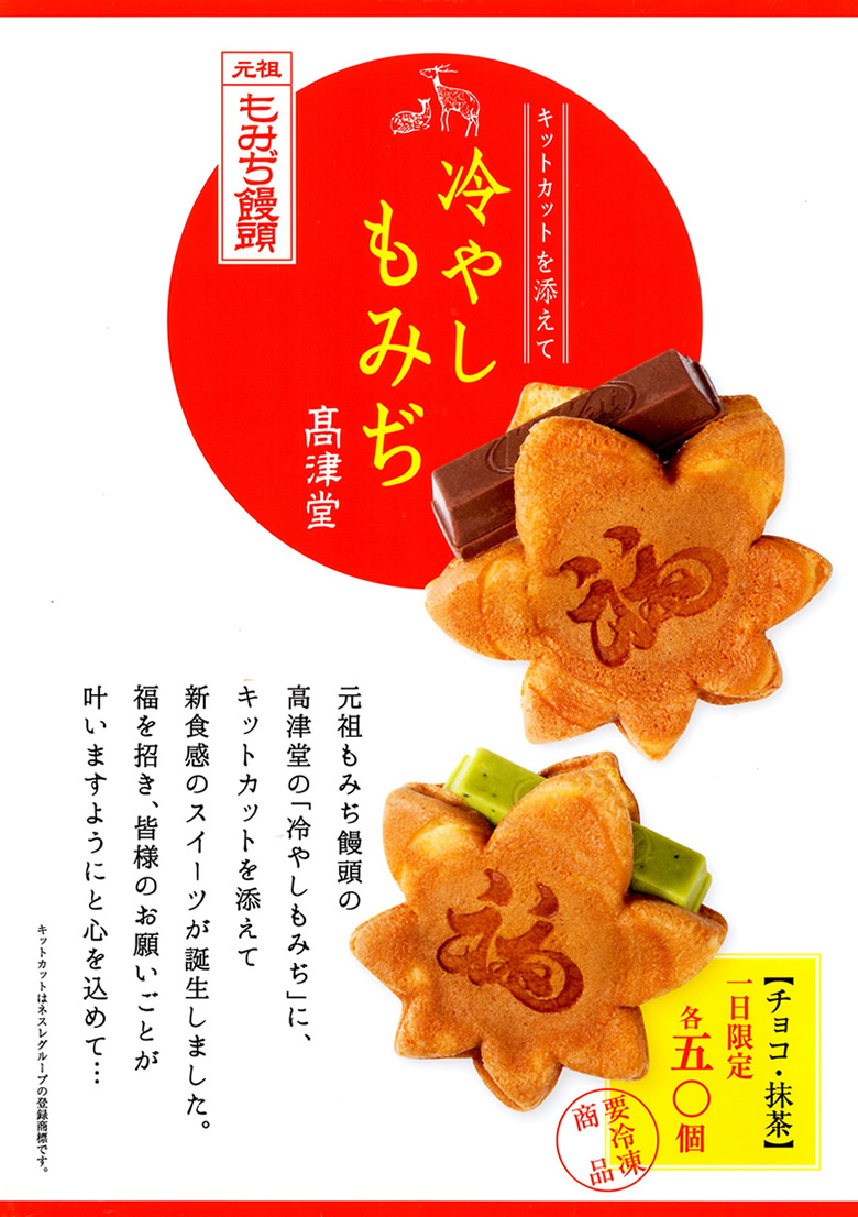 商品名:冷やしもみぢ(キットカットを添えて チョコ・抹茶)