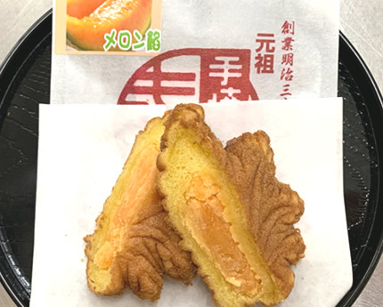 ということで、同じく6月より私ども高津堂も、元祖もみぢ饅頭の「メロン餡」を販売開始します!