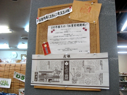 高津堂 もみじ饅頭のパッケージなどを貼っていただき